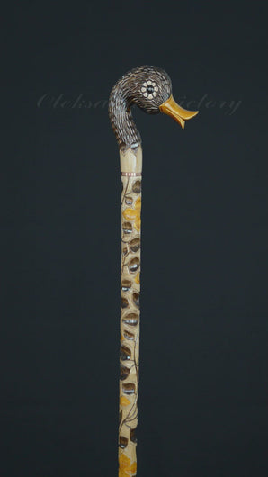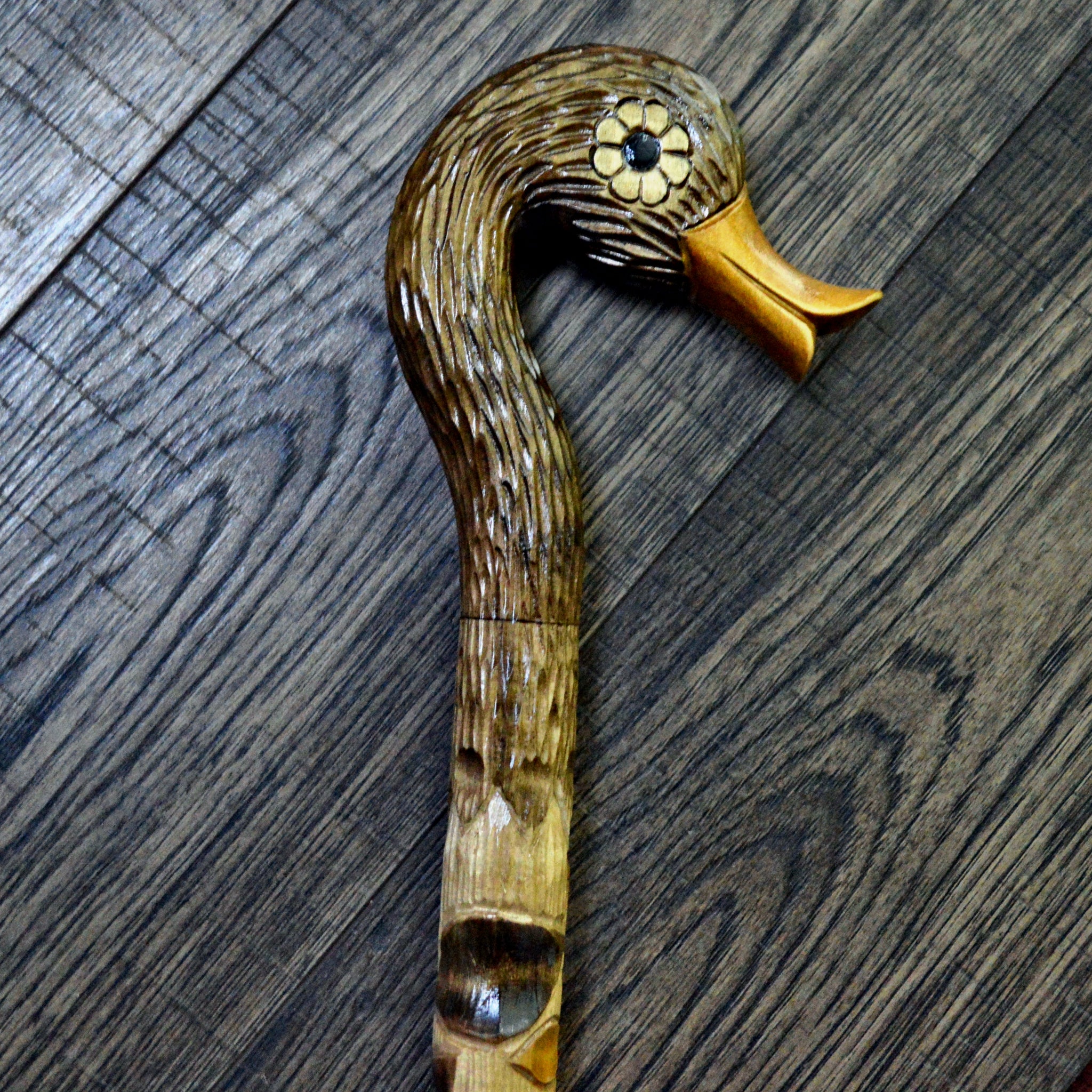 Gift Cane Walking Stick Canes Sticks Reed Staff Wood Wooden Hand-Carved Carving Handmade Cane  Accessories ( Duck )